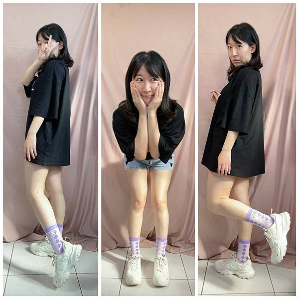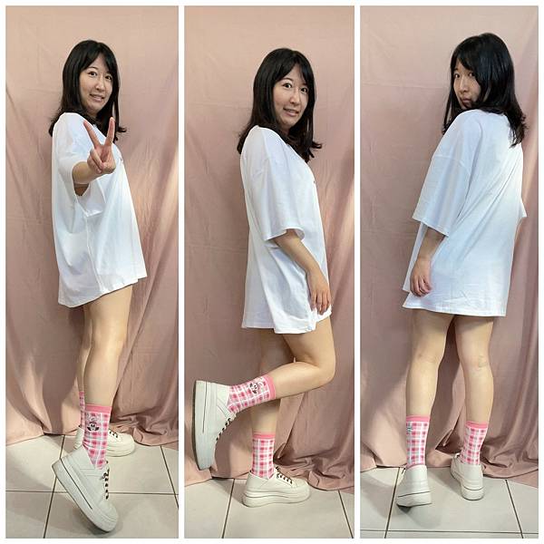 我想要凸顯襪子,上身和鞋子皆選擇白色
